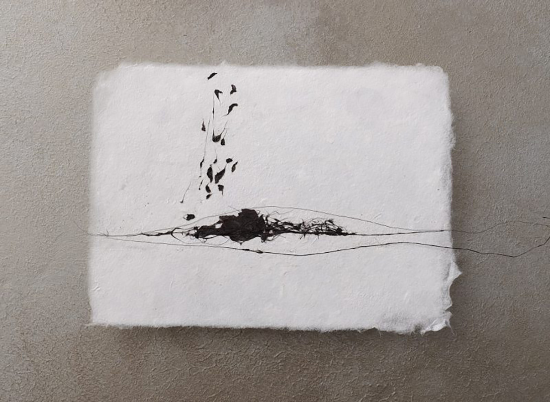 « N°4 » • Sans gravité • 2015 • fibres de Kozo et de bananier teint à la noix de galle • 15 x 21 cm