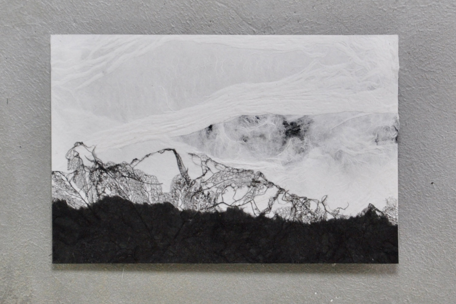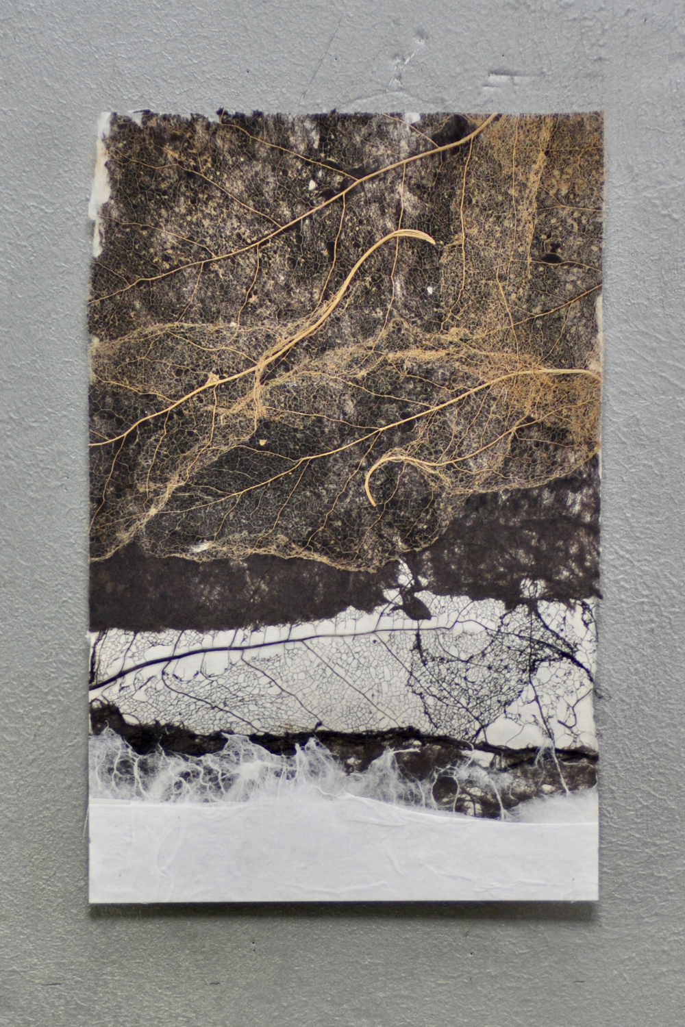 “N° 10 ” • Leafs blades • 2024 • kozo fiber, vegetable dyes and oak • 21 X 16 cm