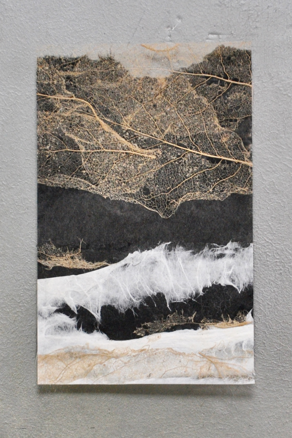 “N° 6 ” • Leafs blades • 2024 • kozo and lokta fibers, vegetable dyes and magnolia • 27 x 17 cm