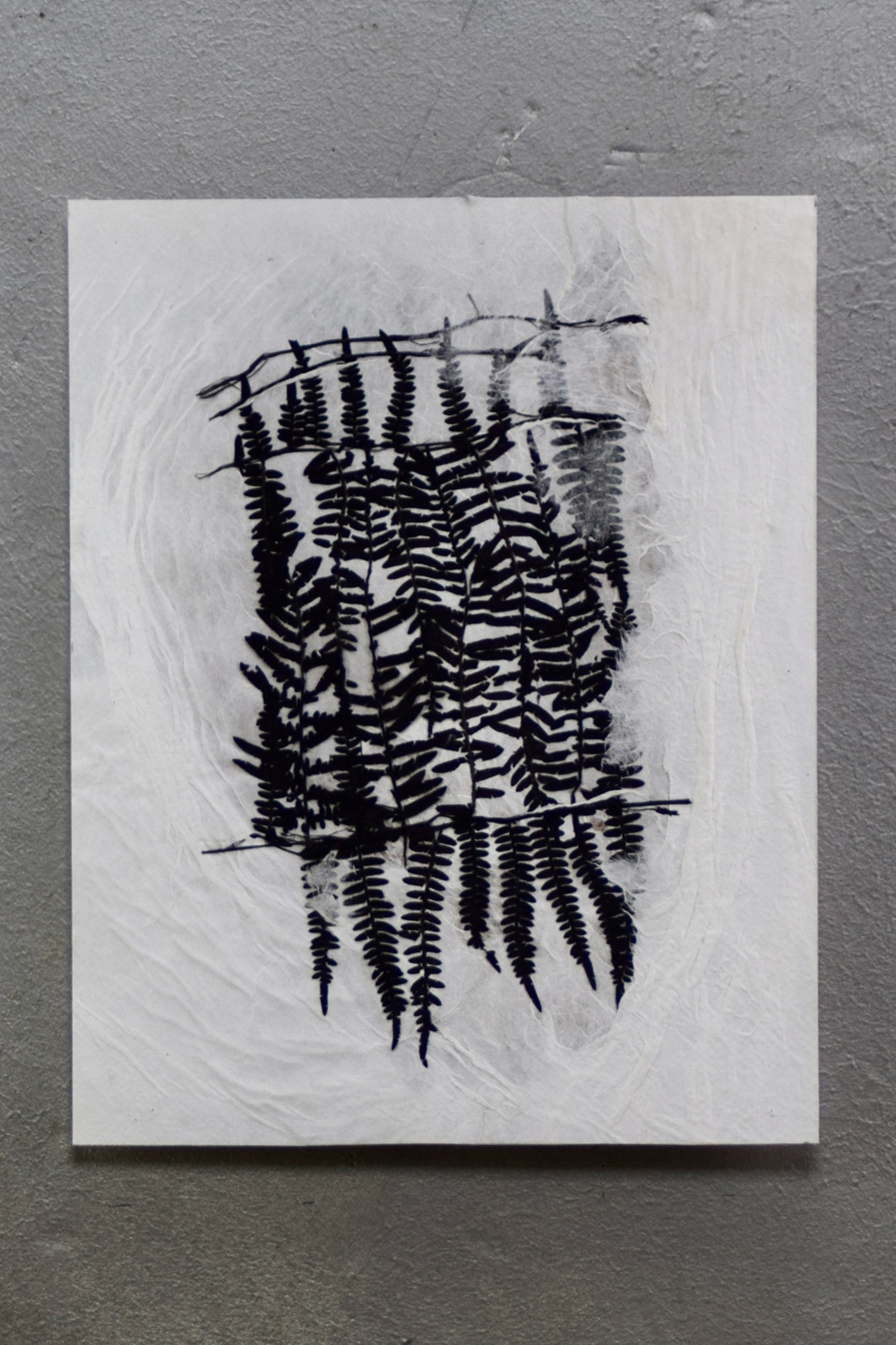 “N° 8 ” • Leafs blades • 2024 • kozo fiber, vegetable dyes and fern • 28 X 22 cm