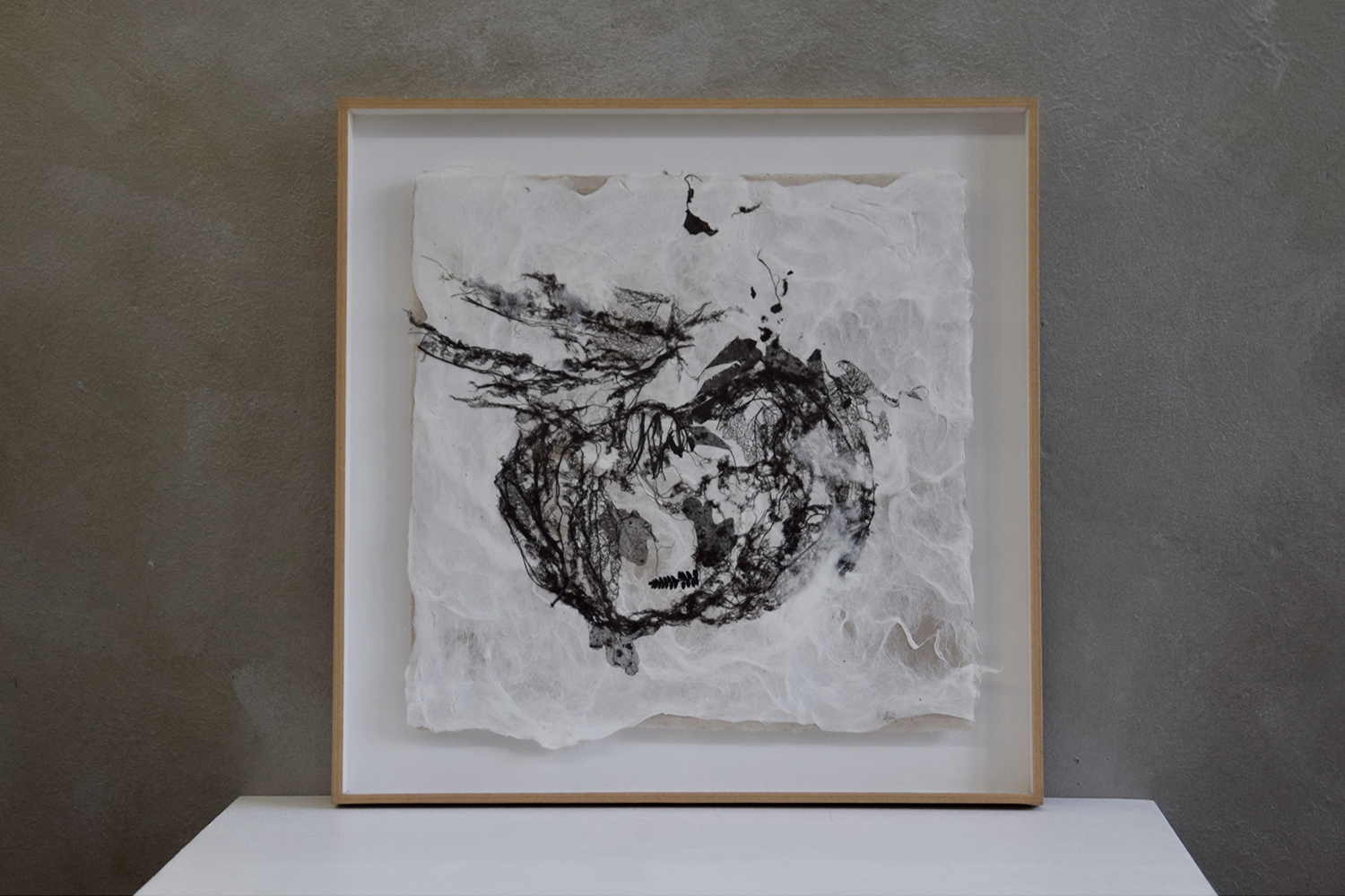 “N° 1 ” • Leafs blades • 2023 • kozo and lokta fibers, vegetable dyes and magnolia • 37,5 x 37,5 cm