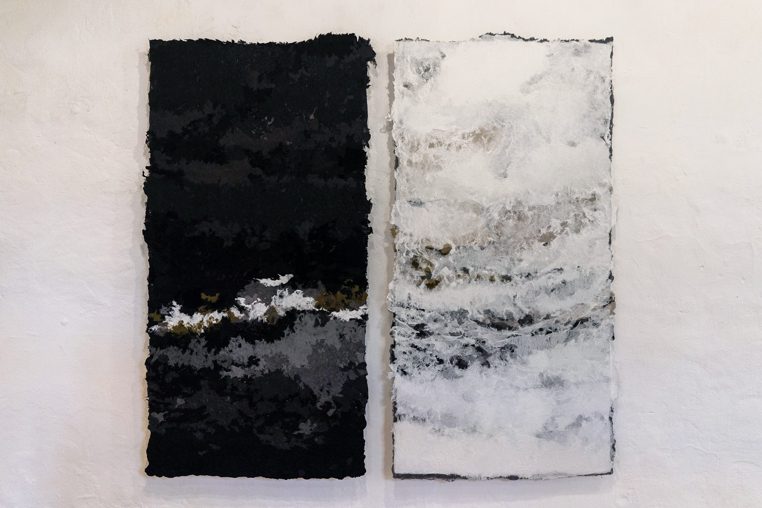 “N° 1 and N° 2” diptych • Variations on the same sky • 2021 • Kozo fibers and vegetable dyes • 200 x 100 cm each piece